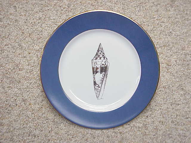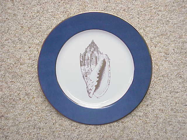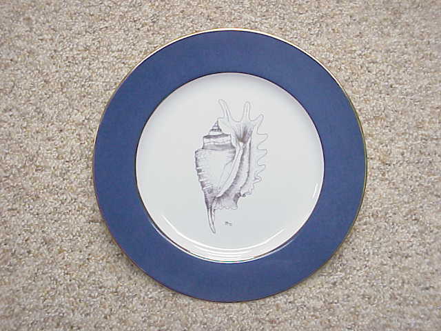 The Shell Collector's Series features 3 different drawings by artist Holly Coovert. Each drawing is illustrated in fine metallic gold. All plates are 10½" China rimmed with Deep Sea Blue and metallic gold.